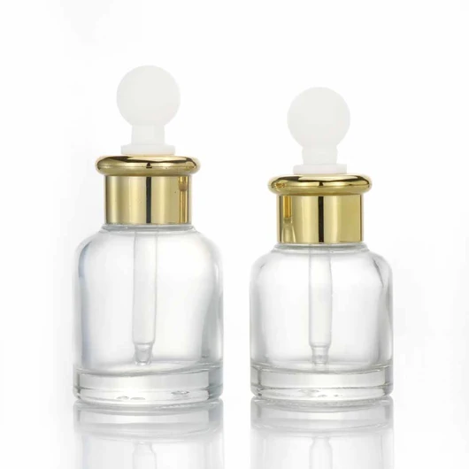 30ml Luxury round Gold Pump Glass Bottle For Eye Serum Essential Oil Dropper Bottles