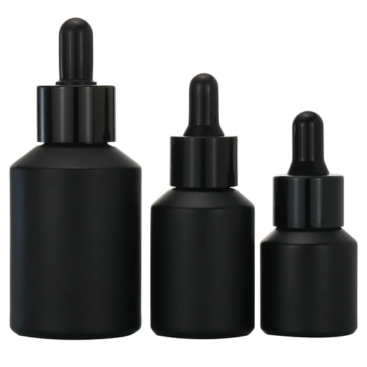 luxury slant shoulder matte black essential oil glass serum dropper bottle