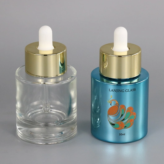 cosmetic packaging dropper bottle 30ml thin flat shoulder glass dropper bottle