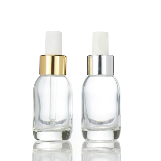 Serum Essential Oil glass bottle with white silver electroplated dropper