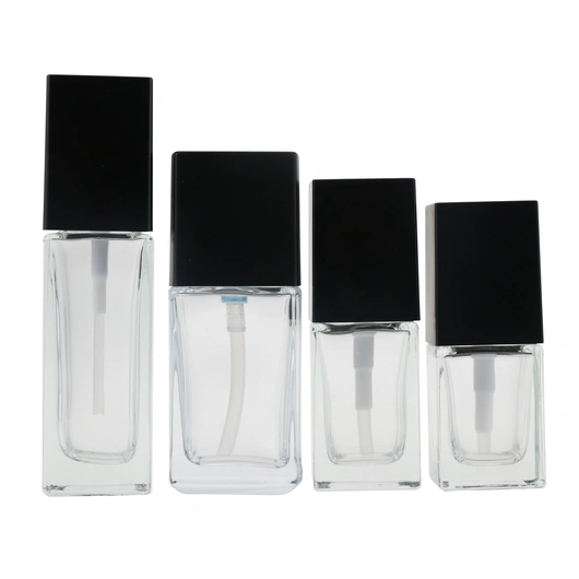 Glass Liquid Foundation Serum Spray Pump Bottle With Black Lotion Pump